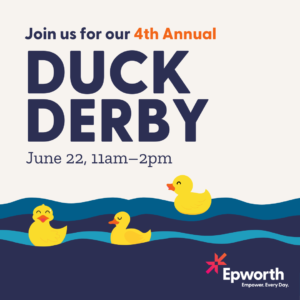 Questions about Epworth’s Duck Derby? Reach out to Cindy Dixon at cidixon@epworth.org for help.